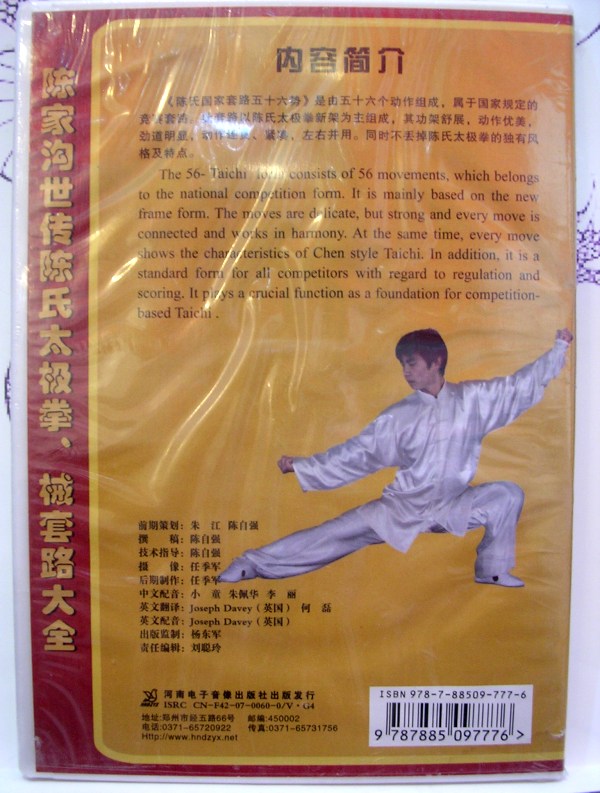 陳氏太極拳の陳 輝老師の国家套路五十六勢のVCDです。